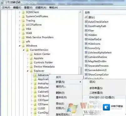 PS:关闭系统提示音并不影响电脑播放多媒体文件的声音,大可不必担心。7. 工具栏优化Windows 7的工具栏预览功能是一项非常酷的功能,让很多用户爱不释手,但是对于一些机器配置较低的用户来说,这可是不太好用,我自己机器配置就不高深有感受。直接关闭了工具栏的预览功能总有点不舍,怎么说这也是Windows 7的象征呀,但要使用预览每次都需要等待很长时间,真的让人头疼。如果你的机器也真的不是那么流畅,那么我们可以试着将窗口的预览时间缩短,以此来加快预览速度。在Windows开始菜单中的搜索栏中输入“regedit”打开注册表编辑器,然后仔细找到HKEY_CURRENT_USER/Software/Microsoft/Windows/CurrentVersion/Explorer/Advanced文件夹,右键点击该文件夹选择“新建DWORD值”然后将其命名为“ThumbnailLivePreviewHoverTime”。