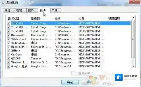 修改完成后关闭注册表编辑器,重启电脑将生效。因为此处涉及修改注册表,建议不熟悉注册表的用户一定要小心仔细看清每一步再动手。8. 优化系统启动项这一项操作相信很多电脑用户在之前的Windows系统中都使用过,利用各种系统优化工具来清理启动项的多余程序来达到优化系统启动速度的目的。这一招在Windows 7操作系统中当然也适用。用户在使用中不断安装各种应用程序,而其中的一些程序就会默认加入到系统启动项中,但这对于用户来说也许并非必要,反而造成开机缓慢,如一些播放器程序、聊天工具等都可以在系统启动完成后自己需要使用时随时打开,让这些程序随系统一同启动占用时间不说,你还不一定就会马上使用。清理系统启动项可以借助一些系统优化工具来实现,但不用其他工具我们也可以做到,在开始菜单的搜索栏中键入“msconfig”打开系统配置窗口可以看到“启动”选项,从这里你可以选择一些无用的启动项目禁用,从而加快Windows 7启动速度。