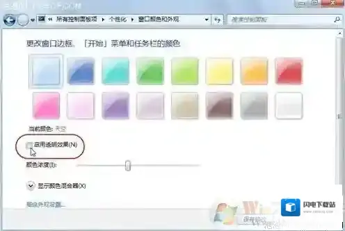 要提醒大家一点,禁用的应用程序最好都是自己所认识的,像杀毒软件或是系统自身的服务就不要乱动为宜。9. 关闭Windows Aero特效Windows 7操作系统中的Aero特效就是从Vista时代微软加入的华丽用户界面效果,能够带给用户全新的感观,其透明效果能够让使用者一眼看穿整个桌面。Aero的两项激动人心的新功能 Windows Flip和 Windows Flip 3d,使你能够轻松地在桌面上以视觉鲜明的便利方式管理窗口。除了新的图形和视觉改进,Windows Aero的桌面性能同外观一样流畅和专业,为用户带来简单和高品质的体验。使用发现该特效是花费了不少系统资源才得以实现的。如果你对系统的响应速度要求高过外观的表现,那么不妨关掉它吧!右键点击桌面打开个性化设置,然后点击“窗口颜色”选项,在弹出窗口中去掉Windows 7默认勾选的“启动透明效果”,就可以关闭Aero特效,不过这样一来Windows 7的界面美观性肯定是会受影响的。