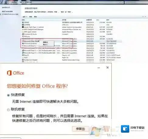 里面找到office2016,右键–更改,选择快速修复进行解决