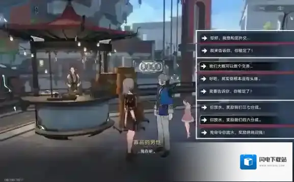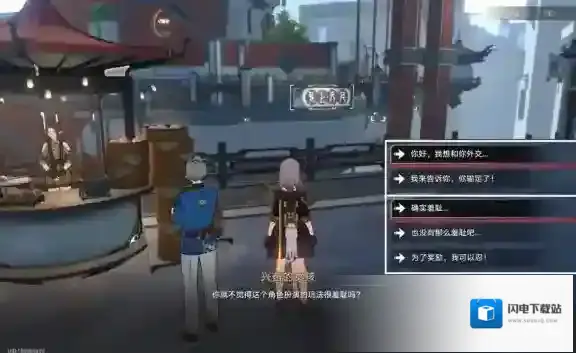 之后与分别与寡言的男性和兴奋的少女对话,选项图中标记的选项