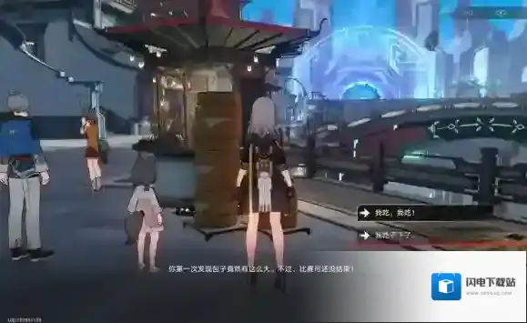 来到小吃店前,与商店老板对话,参加大胃王比赛