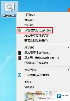 5、这样我们就可以在桌面上看见启动oracle.bat这个命令文件了,只需要右键以管理员模式运行即可开启服务