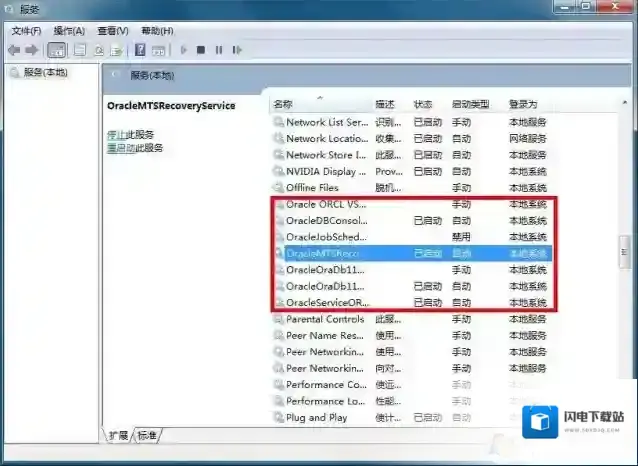 OracleMTSRecoveryService,OracleOraDb11g_home1ClrAgent,OracleOraDb11g_home1TNSListener,OracleServiceORCL。其中OracleDBConsoleorcl,OracleMTSRecoveryService,OracleOraDb11g_home1TNSListener,OracleServiceORCL是默认自动启动的,OracleJobSchedulerORCL是默认自动禁止的,其余的默认为手动操作。假设您的全局数据库名为orcl,则您的Oracle服务应该和上面的一样。如下图所示: