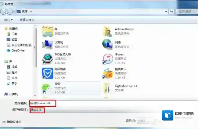 4、然后另存为,命名为启动oracle.bat,文件格式选择位所有
