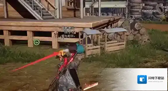 2、然后我们来到哨所的酒馆门口,可以看到一个在维修东西的女孩。