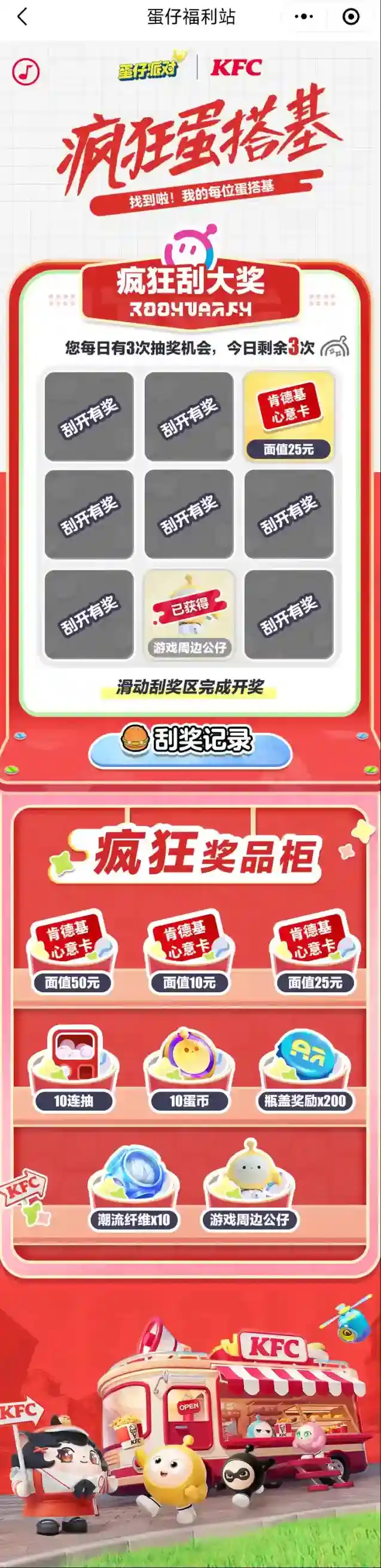 有机会领取肯德基心意卡、蛋仔周边好礼