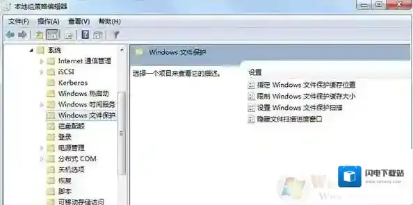 4、然后在打开的组策略窗口中依次点击“计算机配置-管理模板-系统-windows文件保护”选项;