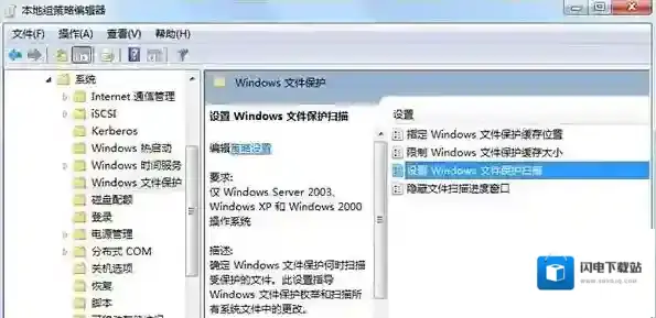 5、最后继续点击windows文件保护,在下一窗口上找到“设置windows文件保护扫描”选项,点击该选项,将其设置为“已禁用”即可。