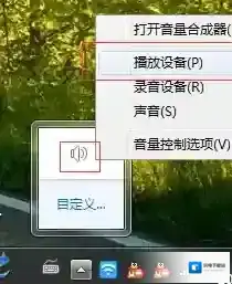 1.在桌面右下方(任务栏右边)找到一个喇叭图标,右击它,在弹出的右键菜单中找到并打开播放设备菜单;