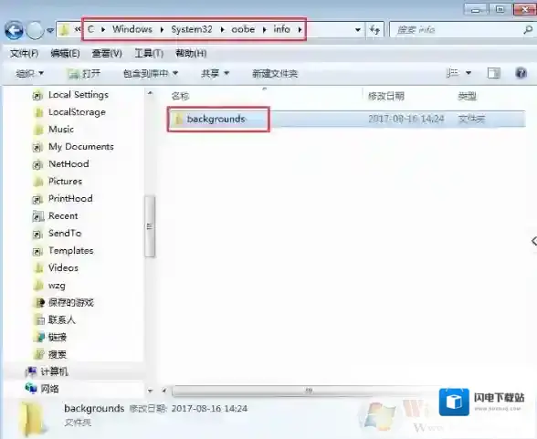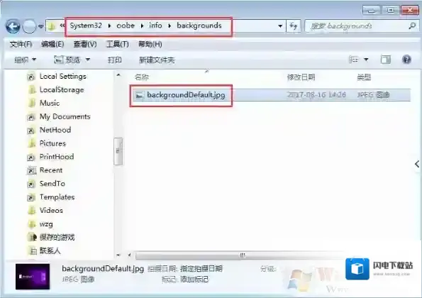 5、将你想设置的背景图片设为1024×768像素大小,并且为JPG格式,然后将调整好的背景图片保到“C:WindowsSystem32oobeinfobackgrounds”;命名为backgroundDefault.jpg;如下图所示: