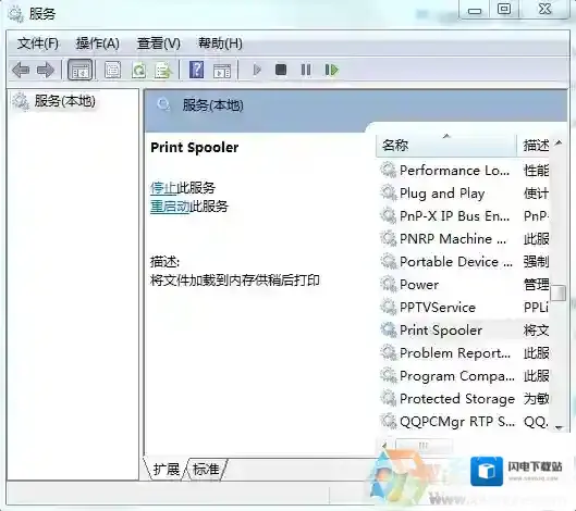 2、打开Win7系统的服务列表后,我们在右侧窗口中寻找 PrintSpooler服务,快捷的方法为选中任何一个服务并按“P”键系统会自动定位到以P开头的服务;