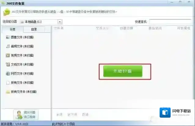 3、安装后自动打开360文件恢复工具,选择要扫描的磁盘,然后点击开始扫描;m.winwin7.com