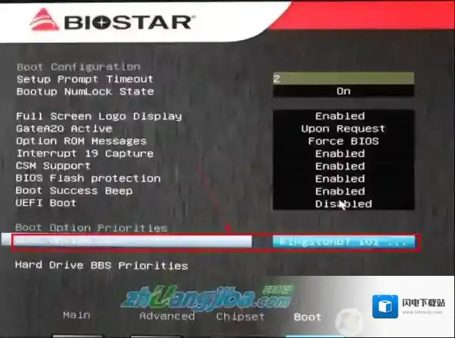 4.打开“HardDriverBBSPriorities”后,如下图,接着我们选择Bootoption#1,然后回车。