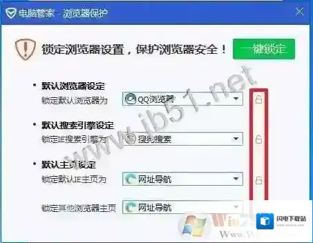 1、点开任务栏里右下角的电脑管家图标,找到“浏览器保护”,进入后把选项右边的小锁都解开