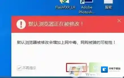 2、此时要是没有被锁定的话就可以设置成功了,如果右下角提示默认浏览器的更改,则需要允许才可以