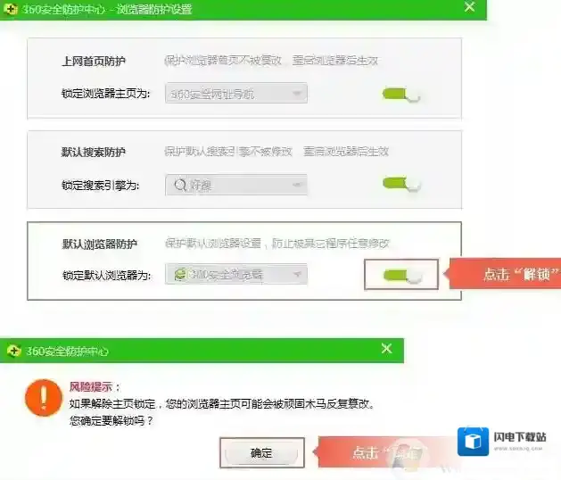 3、再点击默认浏览器防护;