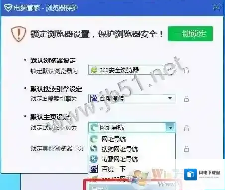 2、检查“锁定默认浏览器”和“锁定主页”是否为“已锁定”状态,如果已锁定,请点击锁定按钮解锁。