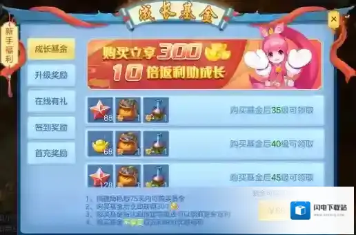 68元可购买,购买后立刻获得等价值金币,之后只需达到指定等级还可领取包含金币在内的各种返利,总价值高达10倍!
