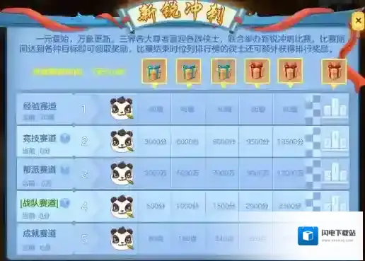 开服前15天,在经验、成就、竞技、帮派、战队5条赛道上达到一定条件即可领取奖励,冲刺结束时每条赛道的前10名还可领取包含专有称谓在内的大奖!