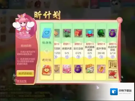 30级开启昕计划后,只要达成指定目标便可领取奖励,解锁进阶版后还可领取对应目标的进阶大奖。
