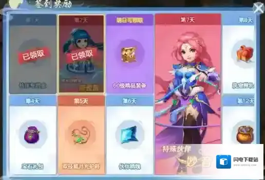 游戏前十五日每日上线签到即有豪华大奖领取,其中第二日签到可获得成长型强力萌宠,第七日签到可获得无需培养的限时强力伙伴。