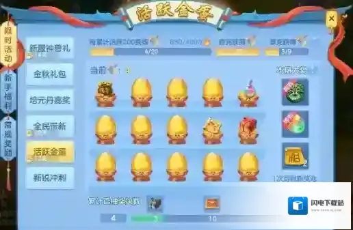 活动期间通过获取活跃度或达到一定充值条件,可以获得敲蛋次数,更有机会获得源生之灵、高级坐骑元神等大奖。