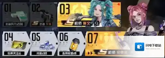 活动时间:创角后14天内活动内容:各位指挥官每日登录后即可在七日签到活动中解锁一份新的补给奖励。奖励内容包含S级武器夜魇、S级机师赛文、S级机师奈奥米等。福利⑥:晋升企划