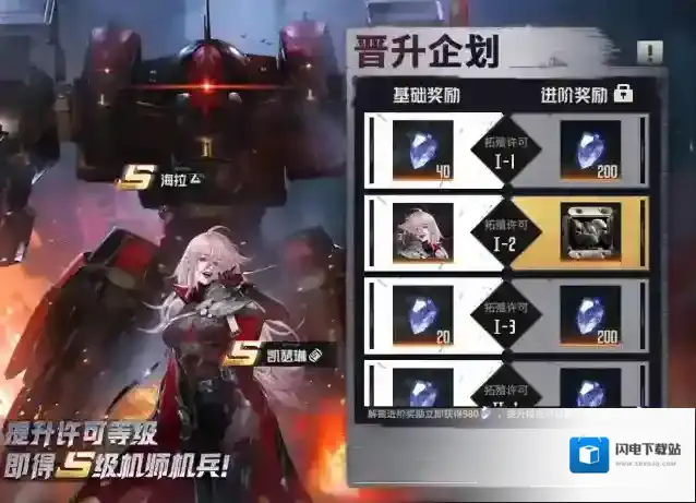 活动时间:永久活动内容:各位指挥官开服登录后,参与晋升企划活动,提升拓殖许可等级即可领取S级机师凯瑟琳及纯晶奖励。福利⑦:闯关赠礼