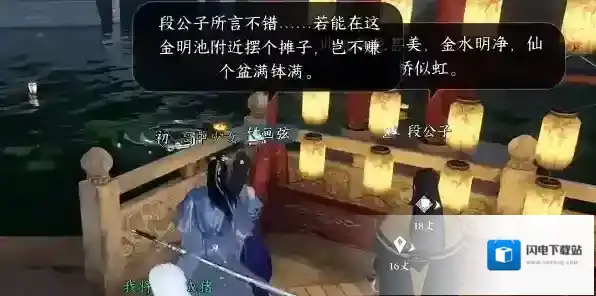 2、接着段公子会离开,此时玩家需要跟随段公子来到桥边,之后再次对话;