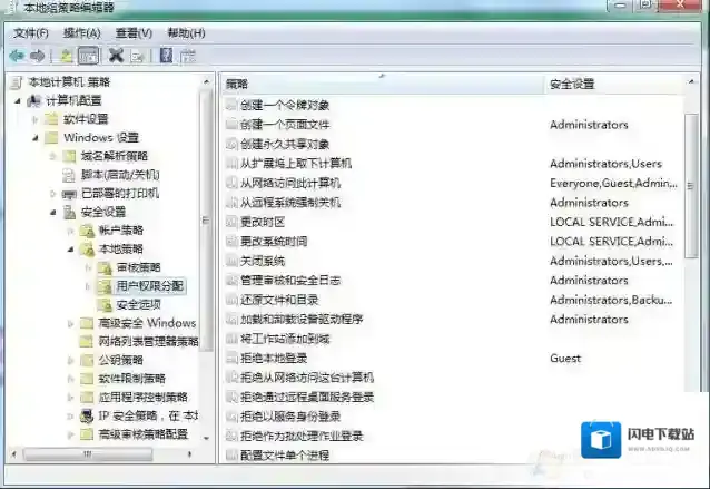 2、打开计算机配置-安全设置-本地策略-用户权限分配;