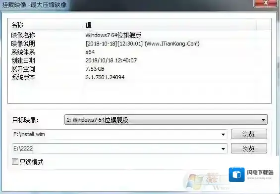4、选择镜像文件,和施放的目录,点击确定就可以开始释放了。