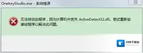 近来有用户反馈Win7系统在开机时就出现onekeyStudio.exe系统错误,具体为无法启动此程序,因为计算机中丢失ActiveDetect32.dll,根据分析这是联想电脑用户系统中的软件出现了问题,下面我们看看怎么解决。