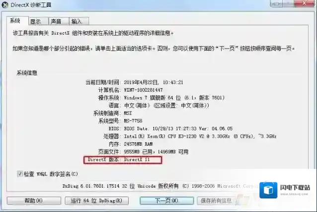 第五步:安装完成后,建议重新启动电脑,然后在运行里 使用dxdiag命令查看DX11是否安装完成。