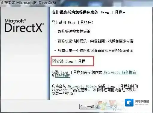第三步,取消勾选“安装Bing工具栏”,在出现的就窗口中直接点击“下一步”,程序开始执行安装程序并拷贝文件到本地硬盘中;