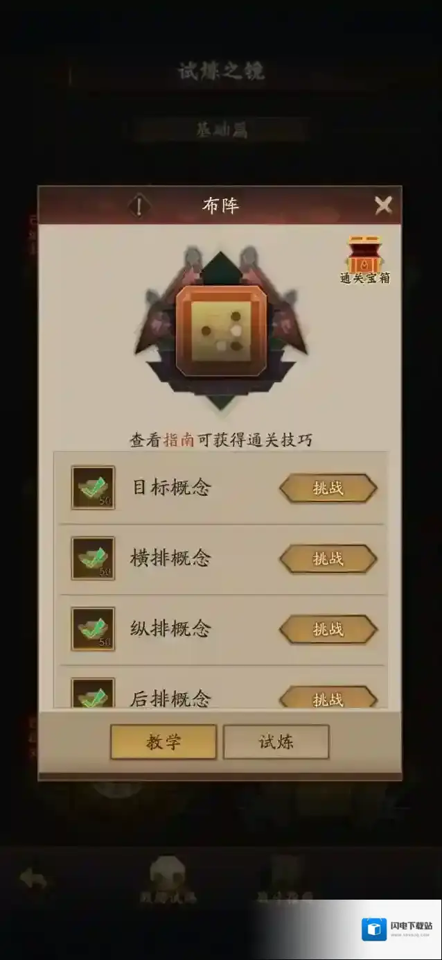试炼关卡需要玩家结合教学部分所学到的规则来灵活应对,所以重点讲解一下这个部分的布阵。
