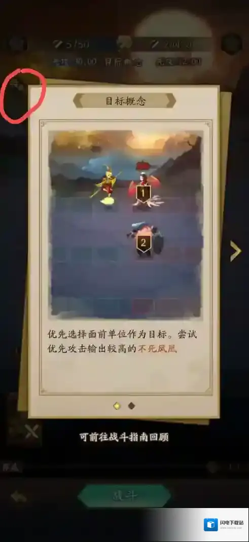 教学关卡可以参考战斗指南的布阵轻松通关,指南在这两个地方可以打开。