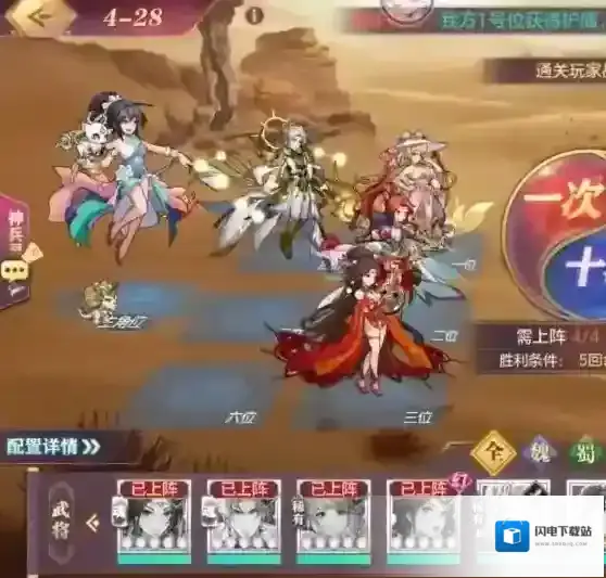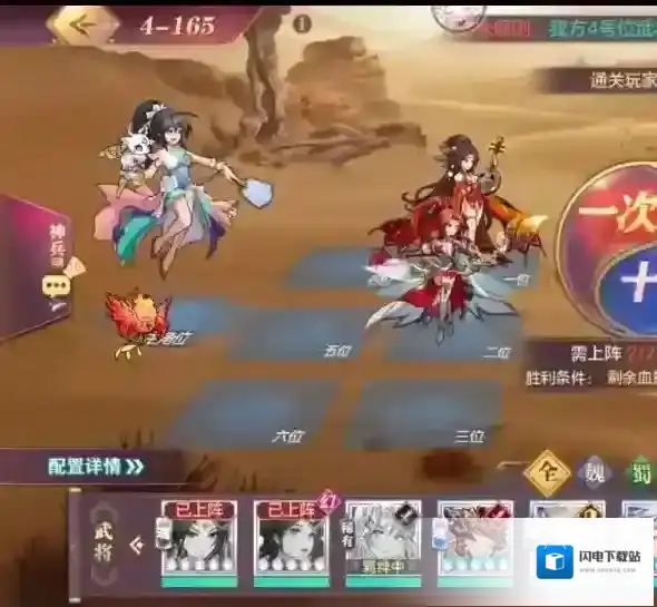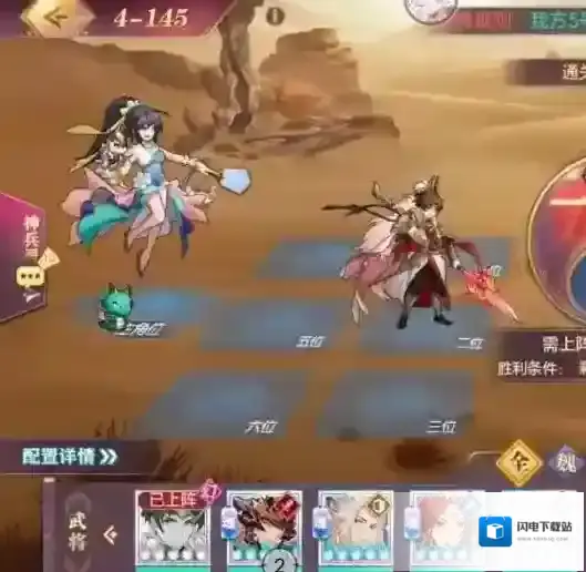 阵容:诸葛果+专武吕玲绮+专武貂蝉+雷霆赵云(诸葛亮羁绊)+姜维+专武蔡文姬