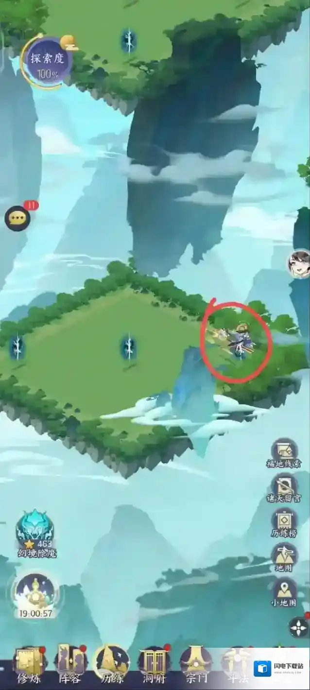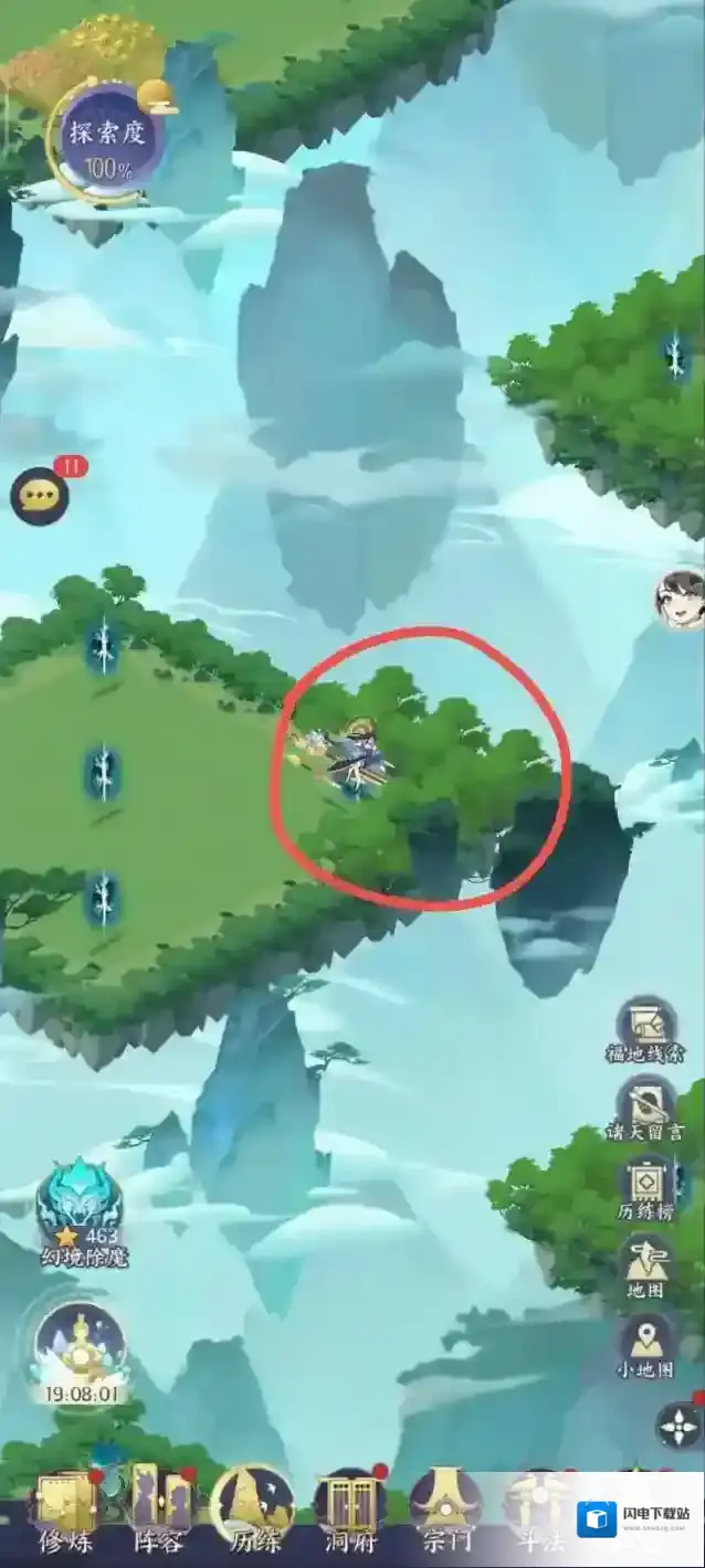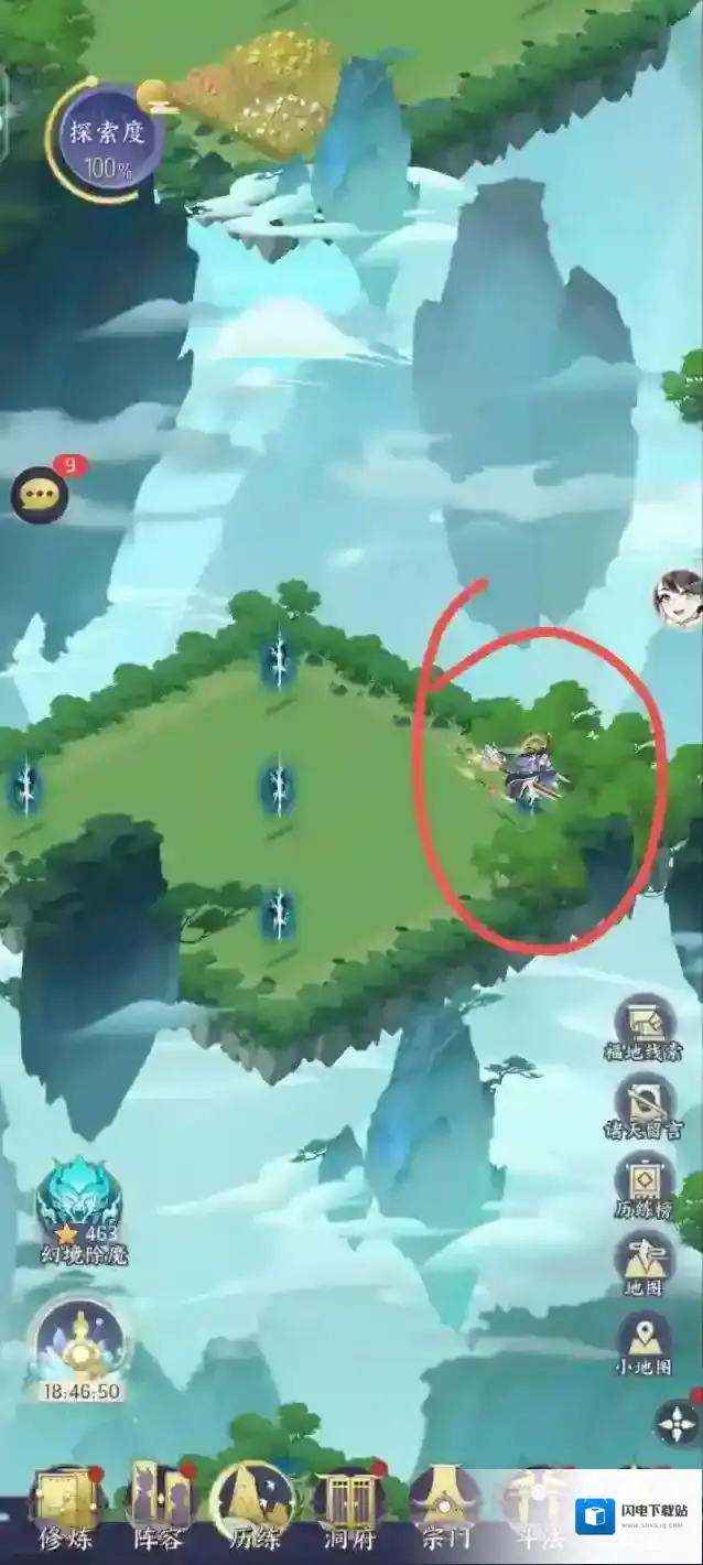 通关办法:一直走树多的传送口,如果分不清树多少,那就一直走“震”传送口,两种办法皆可。走完一遍就可以100%探索了。