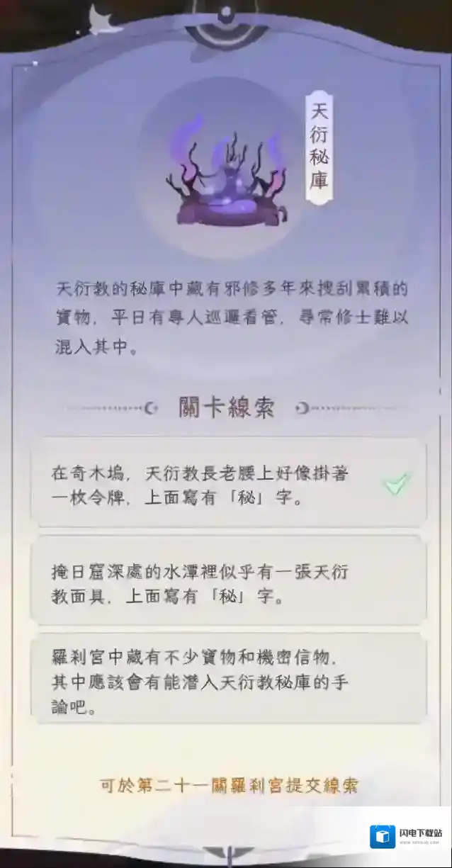 天衍秘库,第九章解锁,之后就可以直接完成。