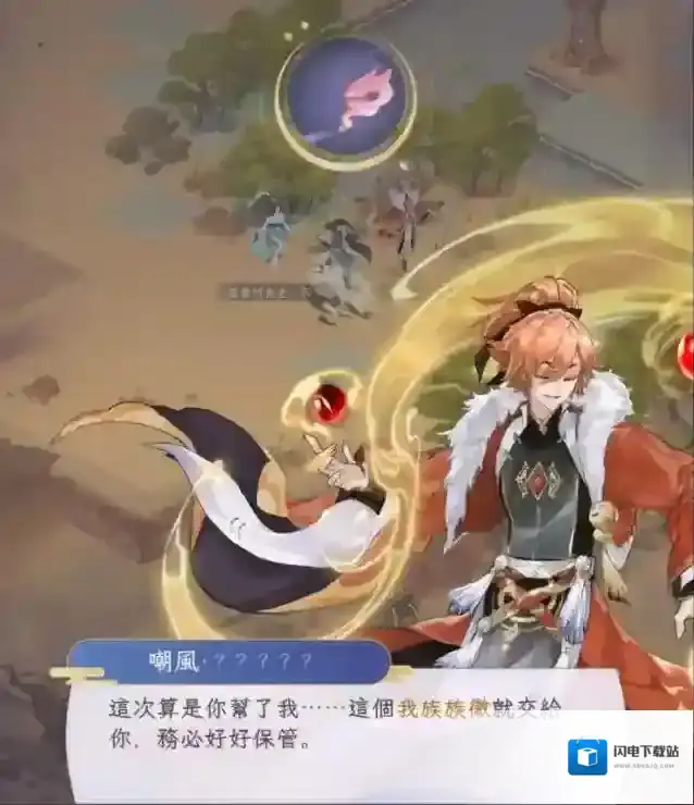 第一个:去第三章芙蓉潭找嘲风,点几下嘲风就会得到族徽