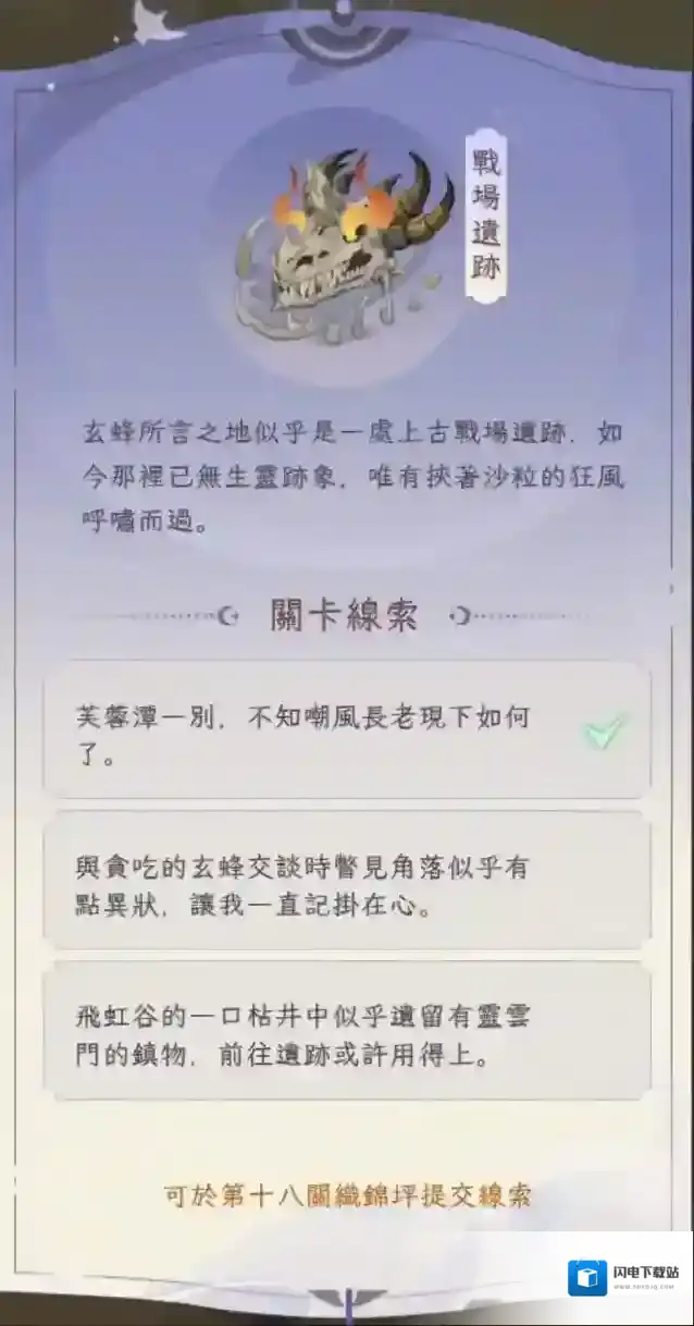 之后就可以回到第六章跟三把大剑对话开启福地战场遗迹了。