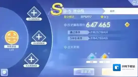 林中鸟歌曲的S评价条件需要421684分,这里完成ALL COMBO的总得分是647465分,在第三章歌曲中分差算是比较小的。虽然歌曲的总音符数量不多,但是歌曲的时长比较短,所以音符相对比较密集,新手玩家想要拿下ALL COMBO并不简单。