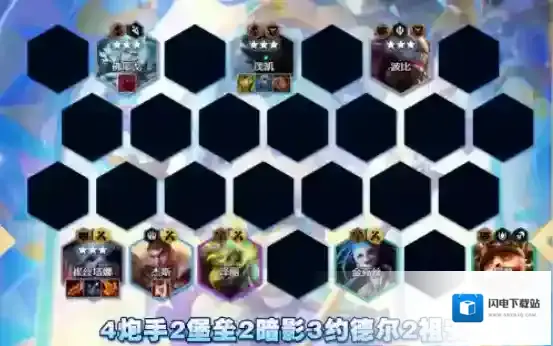2、阵容羁绊:3约德尔4枪手2堡垒2暗影