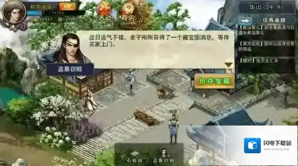 找到强盗,二话不说就开始抢夺宝藏,如果你实力强,打赢了强盗,他会掉落一个藏宝图,里面有宝藏的地点,然后你去挖就可以了。如果你实力弱,输给了强盗,强盗就会逃跑了,你的5000铜板就打水漂了,所以最好实力强一点儿了再接这个任务。