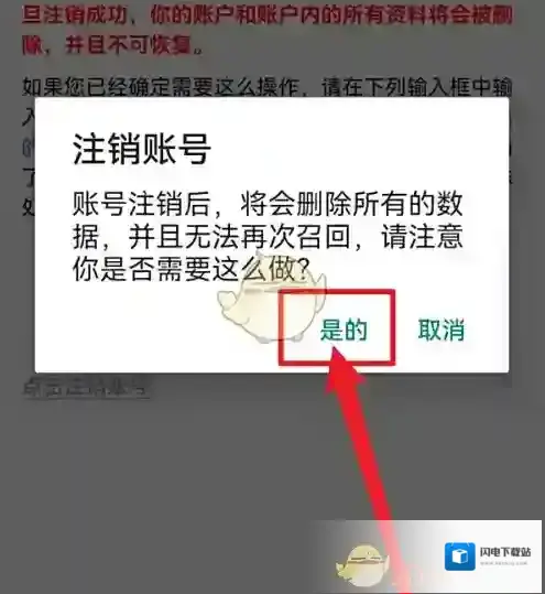 4、打开注销账号窗口,点击是的即可。