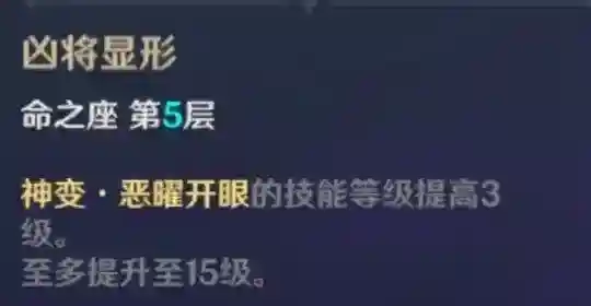 命座解析:雷电将军的五命,提高雷神元素战技的天赋等级,对雷神的提升比较小,性价比和实用性比较低