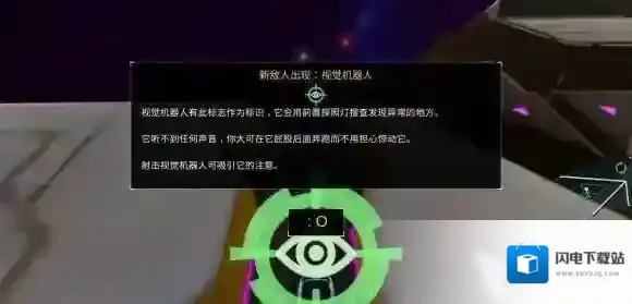 该关卡中,不仅仅存在着激光栅栏障碍物,还会出现机器人。机器人分为两种,一种是视觉机器人,另一种为听觉机器人。