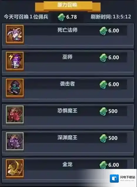 原力召唤每日都会刷新佣兵兑换列表,需要消耗原力碎片进行召唤,原力碎片可通过解雇佣兵获得,在招募或冒险模式下多余的佣兵可通过解雇获得原力碎片。