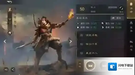 因此当甘宁携带追击战法的时候,则不能研读韬略《劫术》。而携带被动战法的时候则可以研读《劫术》。